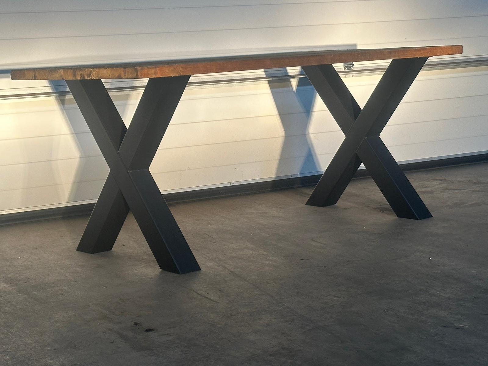 X-vormig metalen tafelonderstel: een opvallend en modern ontwerp dat elegantie en stabiliteit combineert. Perfect voor industriële en eigentijdse interieurs, gemaakt van hoogwaardig metaal voor langdurige stevigheid en stijl.